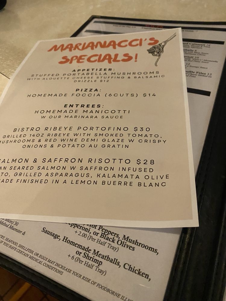 Marianacci's Restaurant offers a delightful dining experience with its intimate and romantic atmosphere, perfect for a casual yet classy night out. Located in Wyoming, PA, this restaurant specializes in wraps, pizza, and authentic Italian dishes. Customers rave about the homemade pasta, generous portions, and affordable prices. The menu boasts a variety of vegetarian options and caters to dietary restrictions with ease. The attentive waitstaff and excellent service add to the overall experience. Whether you're dining in for a special occasion or grabbing takeout, Marianacci's Restaurant is a must-visit for delicious food and a welcoming ambiance. With positive reviews praising the flavorful dishes like cannelloni, seared salmon, and homemade Italian sampler, you're sure to find a new favorite dish to enjoy here. Don't miss out on the opportunity to dine at Marianacci's Restaurant and indulge in their delectable offerings.